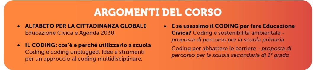 CORSO GRATUITO DI FORMAZIONE DOCENTI: IL CODING NELL'EDUCAZIONE ALLA CITTADINANZA GLOBALE 9 e 12 giugno 2025.